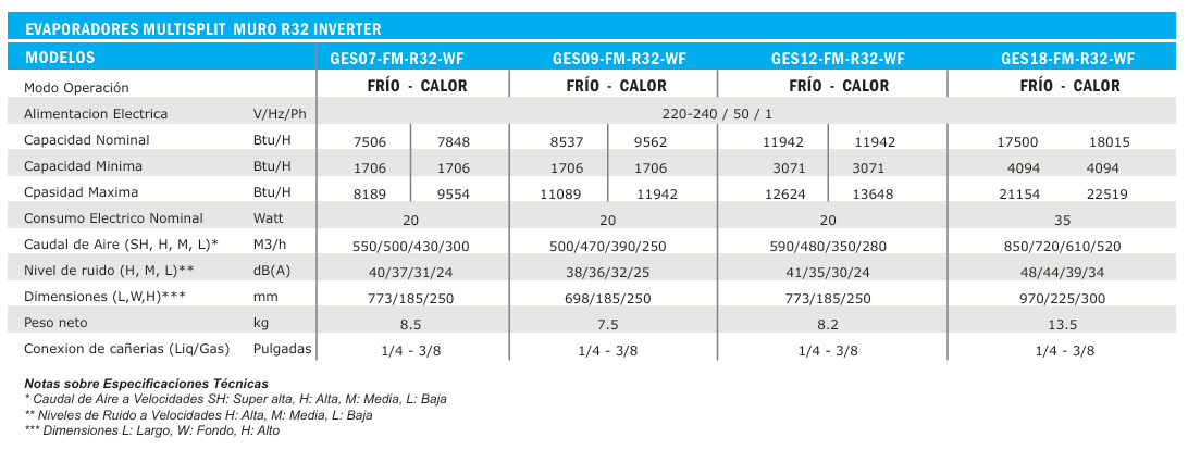 UNIDAD INTERNA MULTISPLIT MURO 7.000 BTUH R32