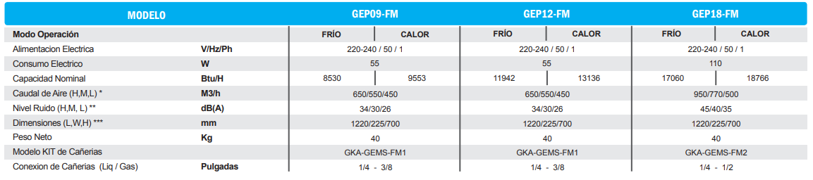 Alimentación Monofásica 220V/50HZ. Incluye Kit de Cañería de 4 mt. y controles remoto Inalámbrico y alámbrico.