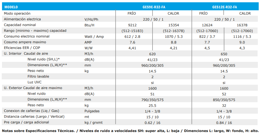 Equipo Split Presentación Muro, Capacidad de Frío 12000 BTUH, Refrigerante R32, Bomba de Calor del Tipo INVERTER. Alimentación Monofásica 220V/50HZ. Equipo de Alta Eficiencia, que puede operar en condición de Calefacción hasta -15°C Exterior y en etapa de Frio hasta 60°C Exterior, posee la capacidad de Tomar Aire Exterior y Extraer aire con alta concentración de CO2 del recinto para una óptima ventilación (opción incluida en el control remoto), posee Filtro Combinado HEPA y Carbón Activado para Toma de Aire Exterior y además Incorpora Luz UVC para conseguir una mejor calidad de aire interior eliminando Virus y Bacterias.