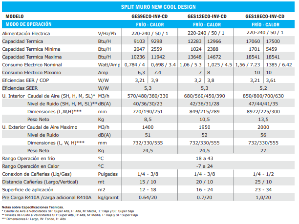 Mini Split Muro Bomba de Calor 18000 BTUH R410A Inverter Aphro Virus Protect. Equipo con clase Eficiencia A, Alimentacion Monofasica 220V/50HZ, y filtro de Iones de Plata. Incluye Kit de Cañeria de 4 mt.