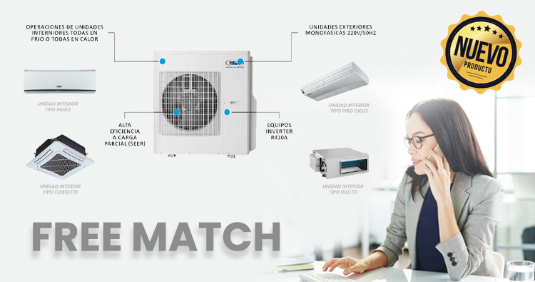 Con esta nueva versión de equipos multisplit se tendrá una mayor flexibilidad y mayor gama de opciones de selección de equipos, puesto que ahora con unidad exterior se puede configurar con hasta 5 unidades interiores de climatización con capacidades de 9000 hasta 18000 BTUH.