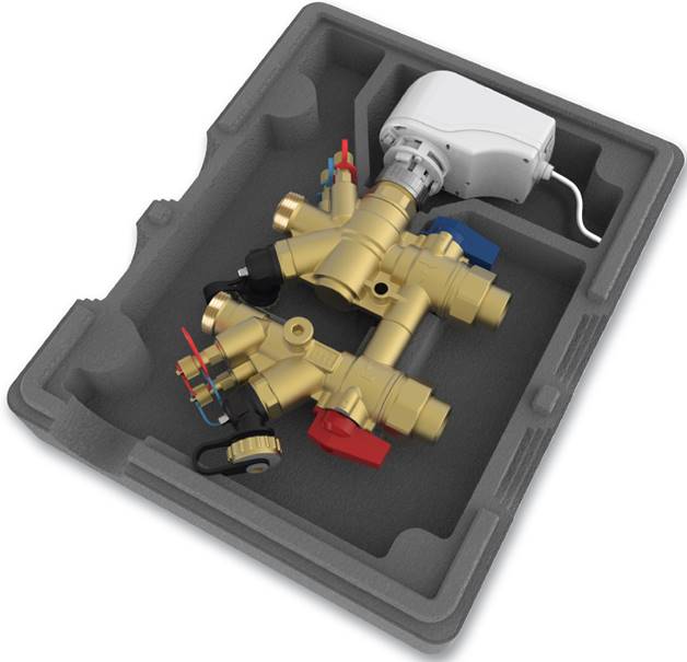 El kit válvula Fan Coil es una unidad válvula multifunción pre-ensamblada diseñada para aplicaciones que requieran control y flujo constante. El control de flujo se realiza con una válvula de equilibrio dinámico PICV (válvula de control independiente de la presión).