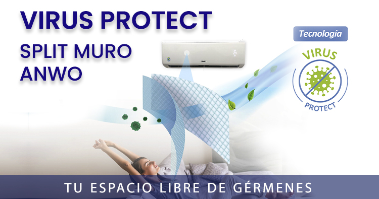 Anwo presenta su Equipo de Aire Acondicionado Split Muro con Tecnología de Filtrado Virus Protect.